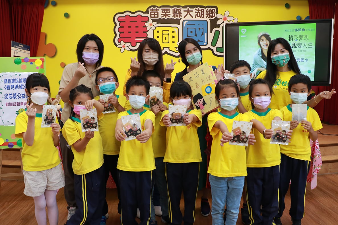 苗栗華興國小校長陳佳琳特別跟觀看孩子成果演出的家長,介紹學校的聯絡簿封面,是放全校上許願樹的活動照片,這學期看孩子上美學課時,被孩子們的美聲感動,希望每天放學音樂都可以播放孩子們的美聲,來自孩子們最真實的回饋,鼓舞著精銳持續讓許願樹計畫前進的動力。