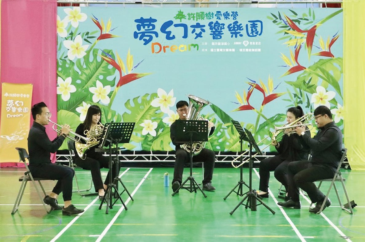 而從一天的表演活動變成30場課程,國台交團員們分成木管、銅管、弦樂等重奏樂團,「許願樹愛樂營」演出現場也將舞台背板、音響設備一應俱全,讓孩童視覺、聽覺都能有更完美體驗。